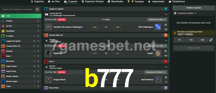 A aposta b777 oferece aos jogadores a experiência mais conveniente de apostas em eSports!